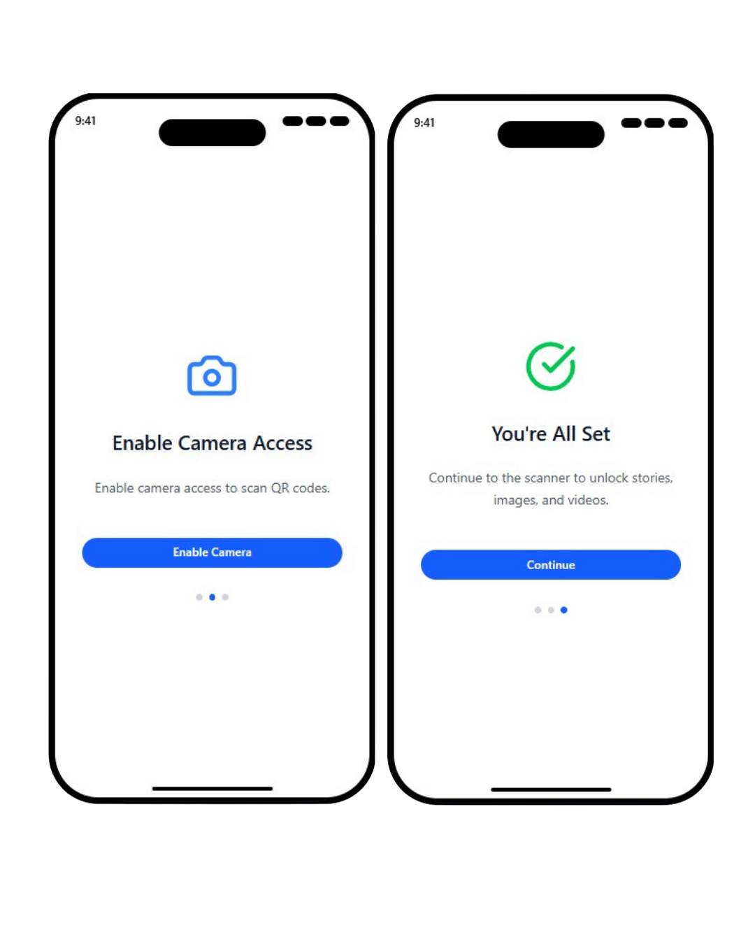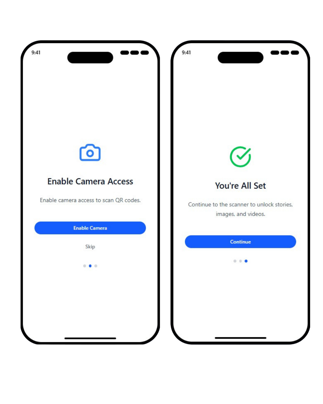 The original onboarding flow included a Skip button on the camera permissions screen, which let users bypass setup without enabling camera access. If users tapped the button, the app still allowed scanning. This made the "enable camera access" step feel optional and unclear.