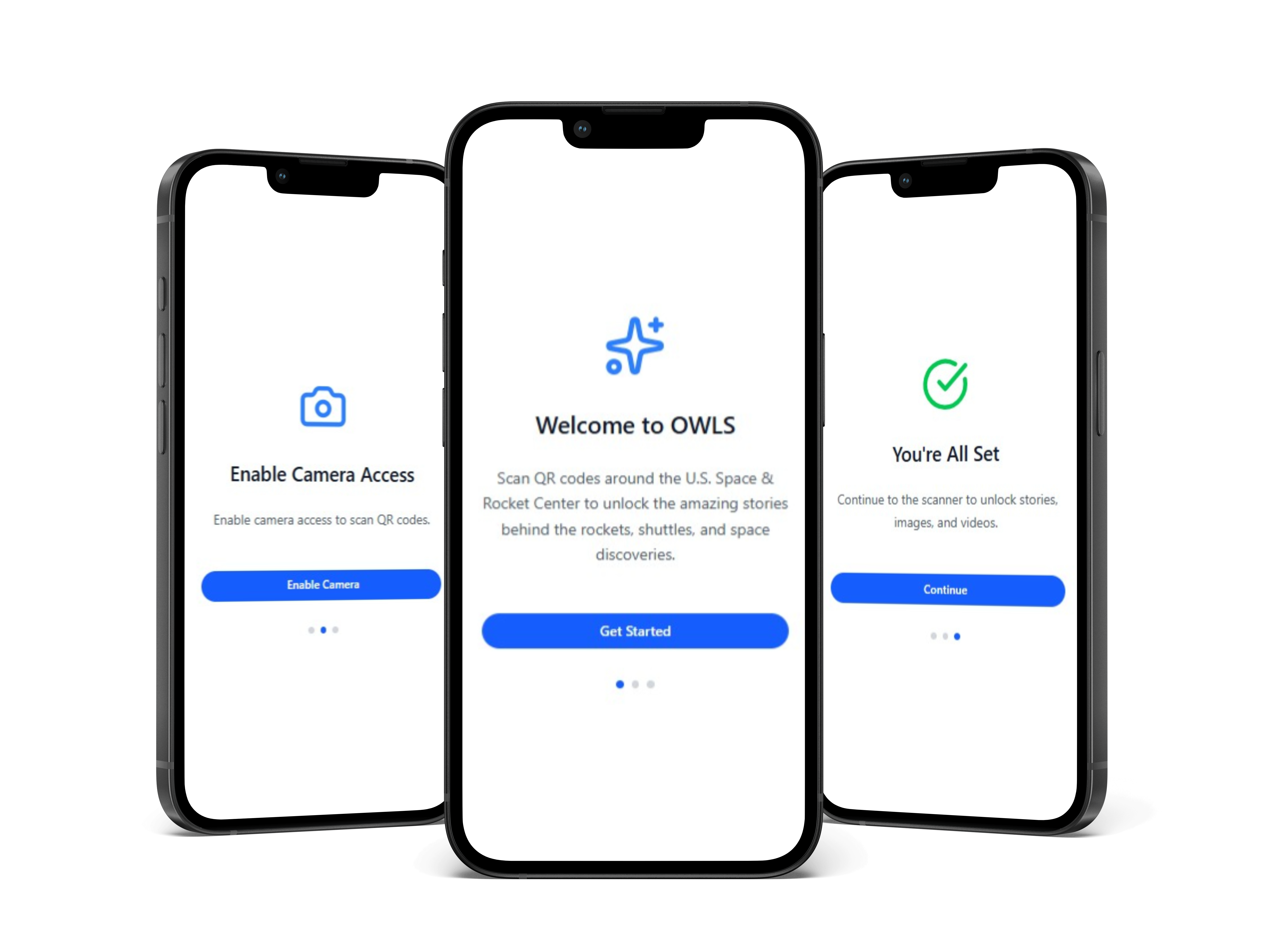 The OWLS app was developed by Intuitive Research & Technology for the U.S. Space & Rocket Center in Huntsville, AL. The app enabled visitors to scan QR codes within the exhibits to access stories, videos, and pictures of artifacts. I designed onboarding messaging, tooltips, and error states to make scanning simple, intuitive, and self-guided.