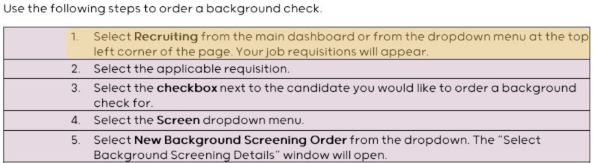 This is an example of a callout I used to reinforce important details that administrators often overlooked. In this example, flagged background checks had to be resolved directly in HireRight before a candidate could be moved forward in the hiring process. Highlighted reminders like this made compliance steps clear, reduced errors, and helped administrators complete hiring workflows accurately and with confidence.
